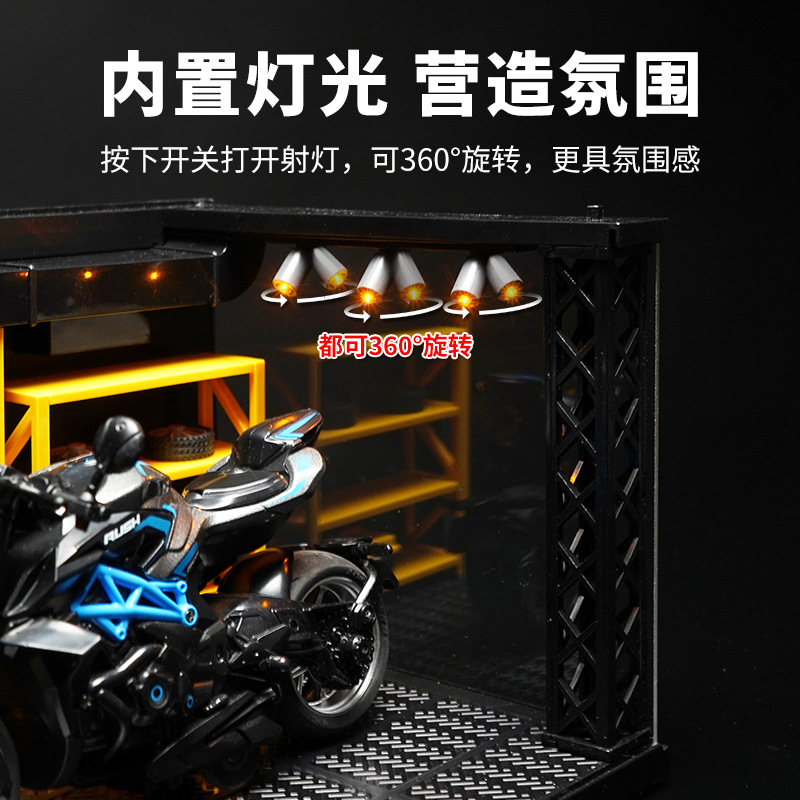 (Boxed)Simulation Alloy DIYScene Repair Shop With Lights Toy Model Construction Children's Toys