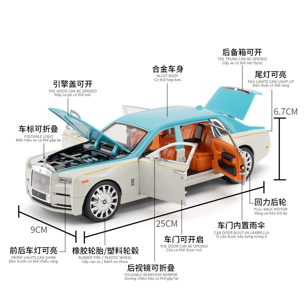 (Foam Boxed)Simulated1:24 Phantom Special Edition Alloy Car Model Ornaments Children's Toy Dropshipping