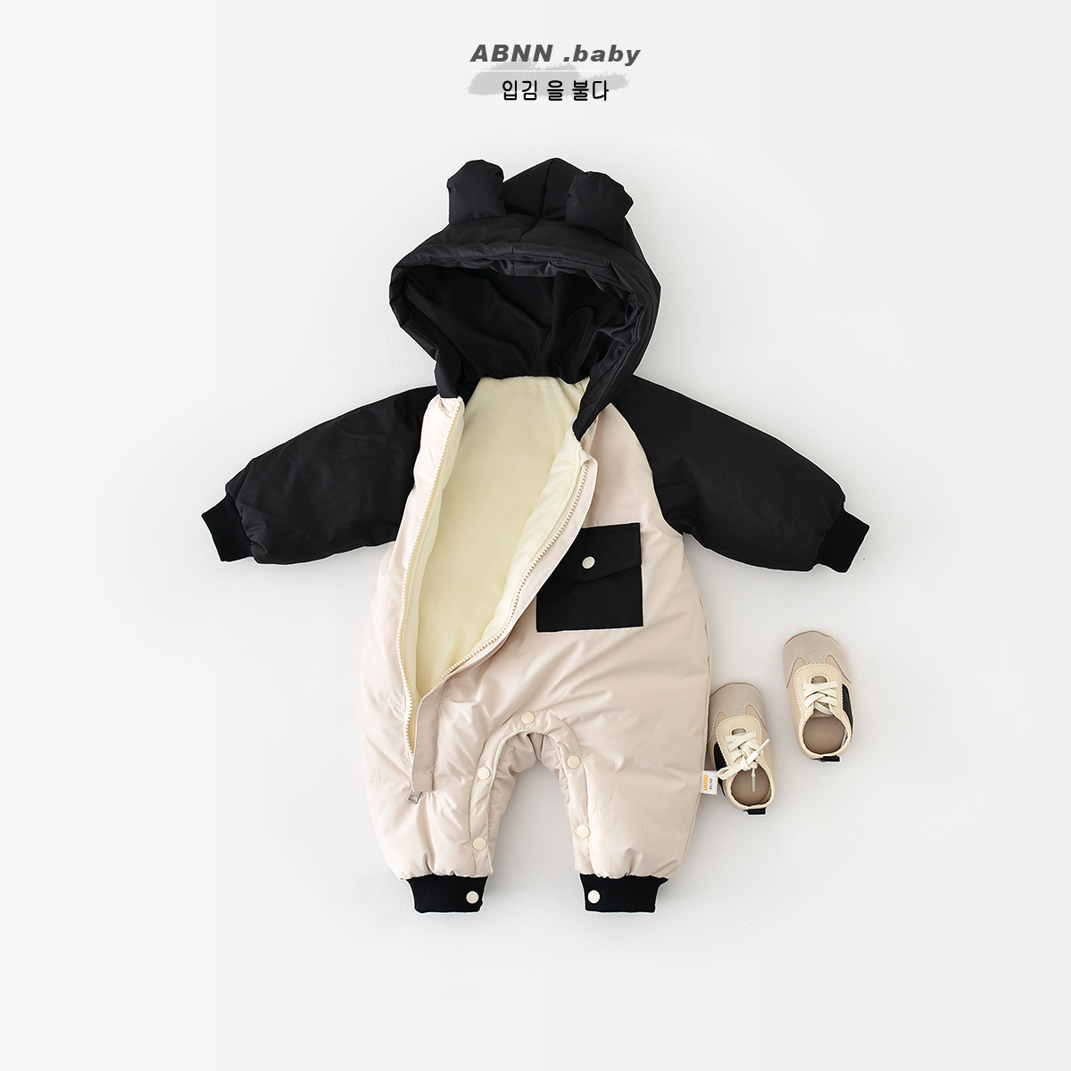Baby Jumpsuit Winter Hooded Plus Velvet Warm Cotton Coat Thickened Cartoon Clothes For Going Out Men And Women Baby Crawling Clothes
