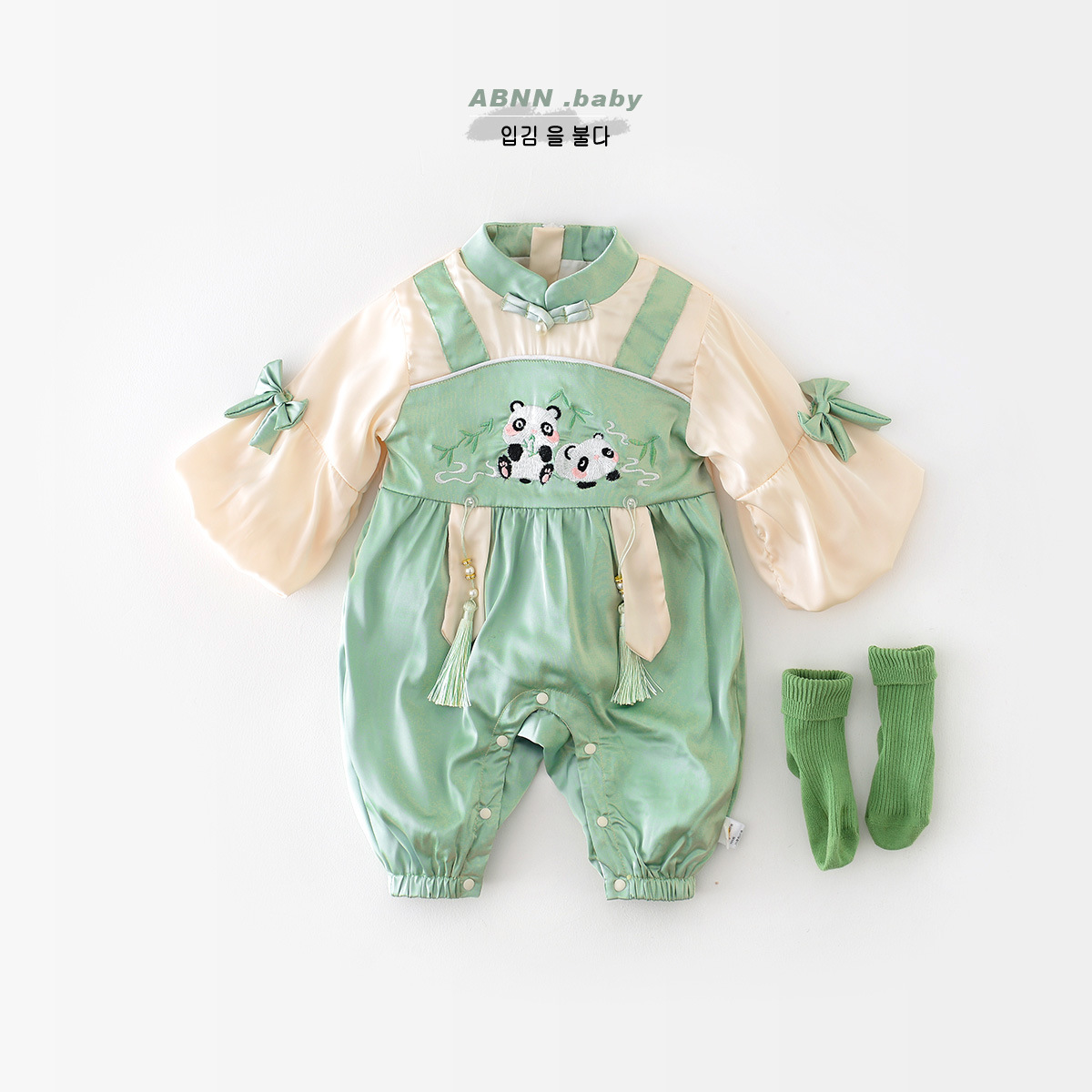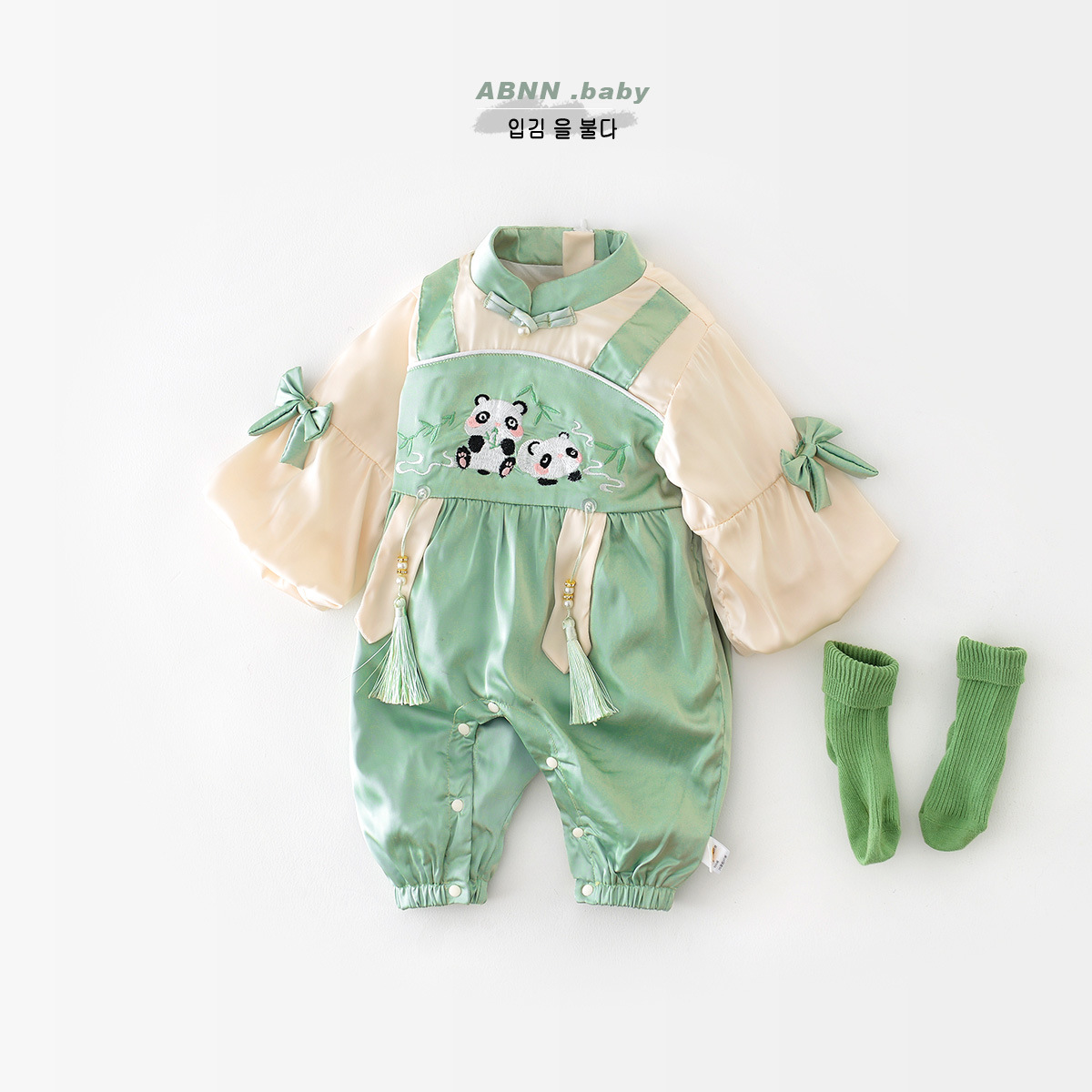 Spring Baby Girl Chinese Style Cartoon Panda Onesieborn One Month One Year Old Romper Suit Western Style