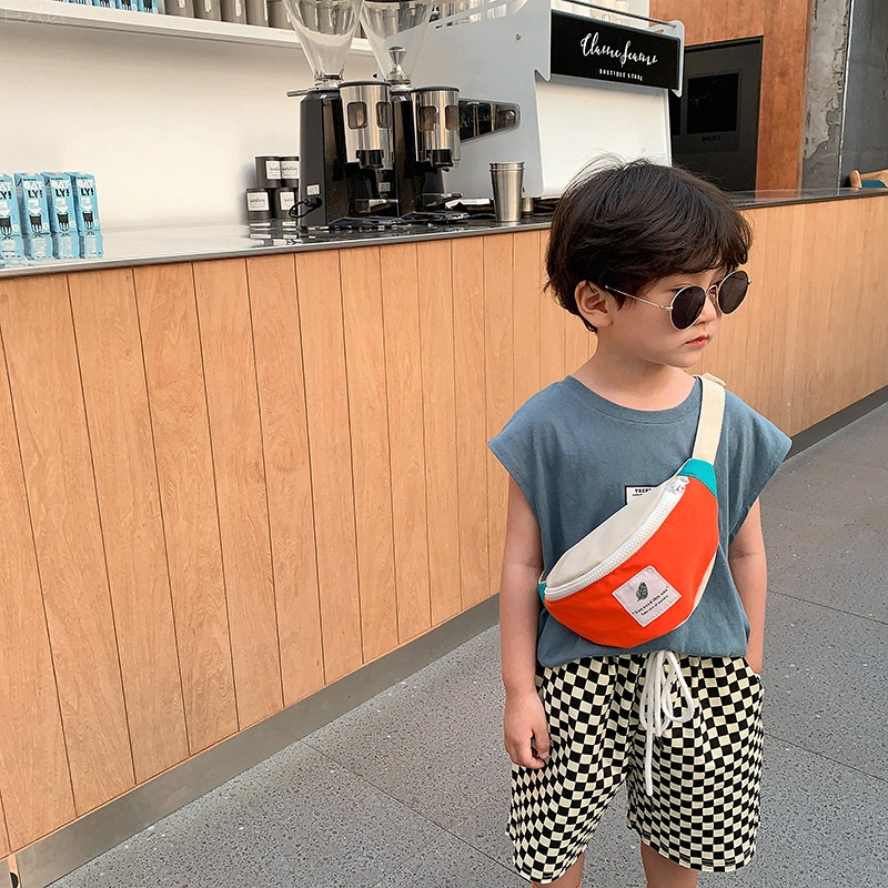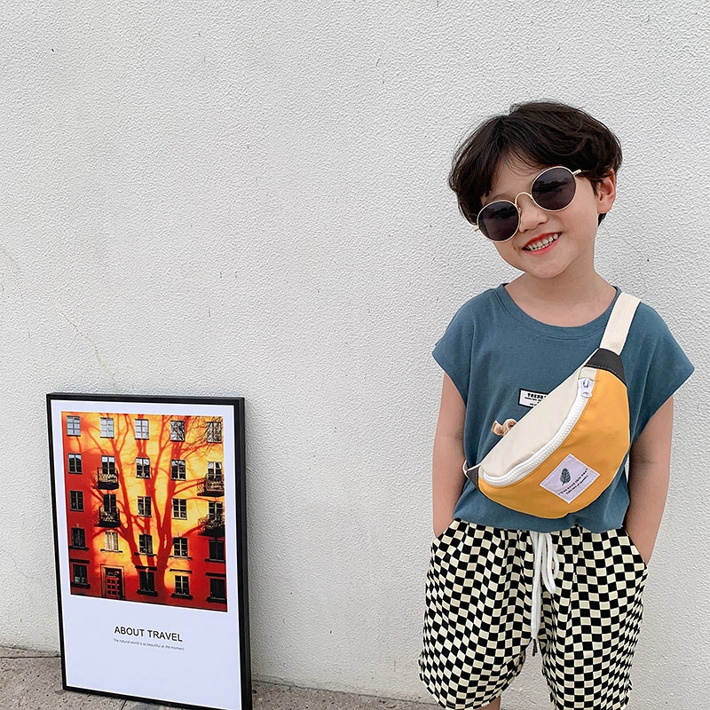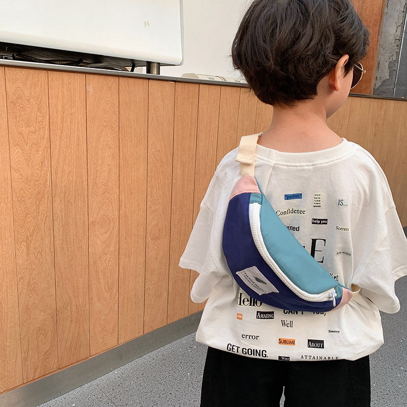 Children's Waist Bag Korean Version Autumn Contrast Color Boy's Crossbody Bag Mini Aike Girl Shoulder Bag Chest Bag