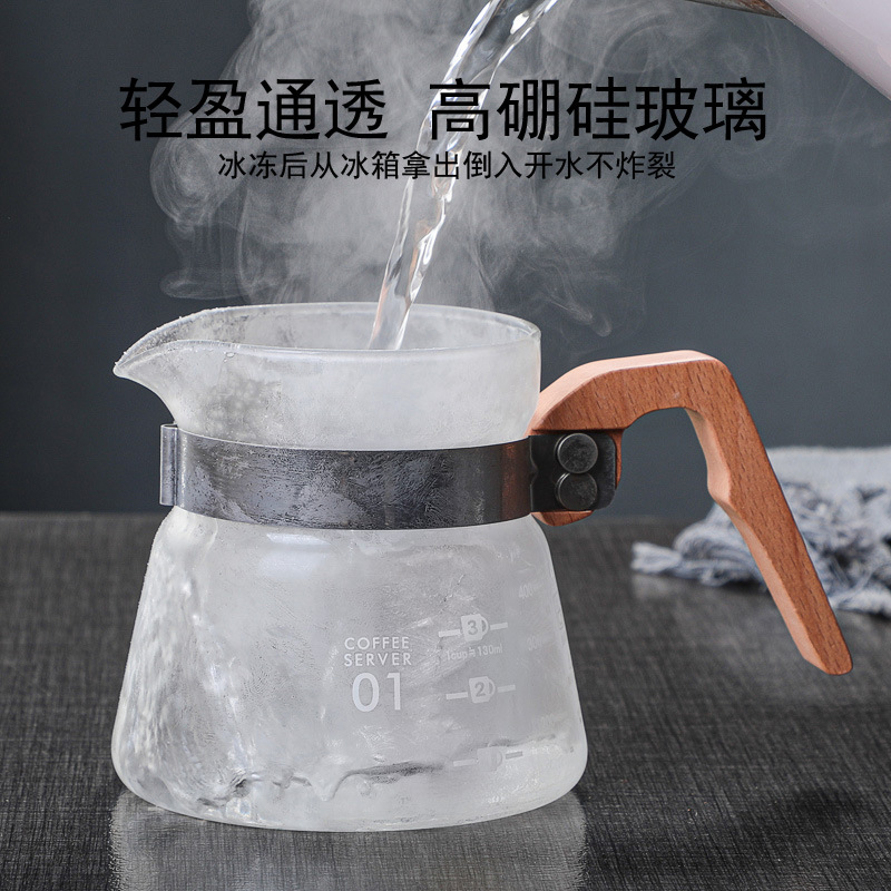 Blown Thickened Glass Coffee Pot Set,Rubber Wood Handle,Sharing Pot,Coffee Cup,Large Quantity In Stock
