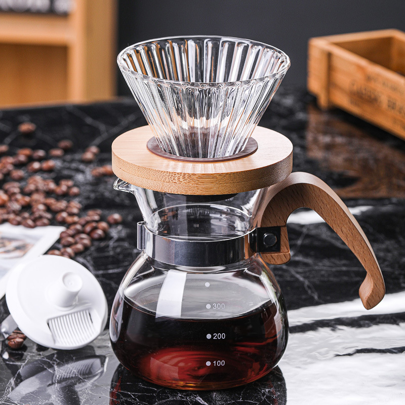 Special Of Glass Coffee Pot Wooden Handle Set V60 Filter Cup Hand Brewing Pot Set Can Be Ordered Ogo