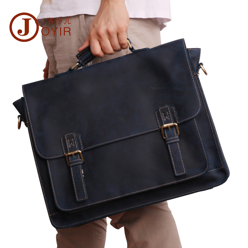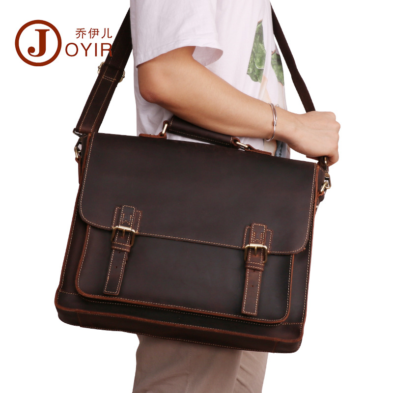 Genuine Leather Men's Briefcase Business Retro Handbag15.6 Inch Computer Bag Men's Crazy Horse Leather Multifunctional Men's Bag