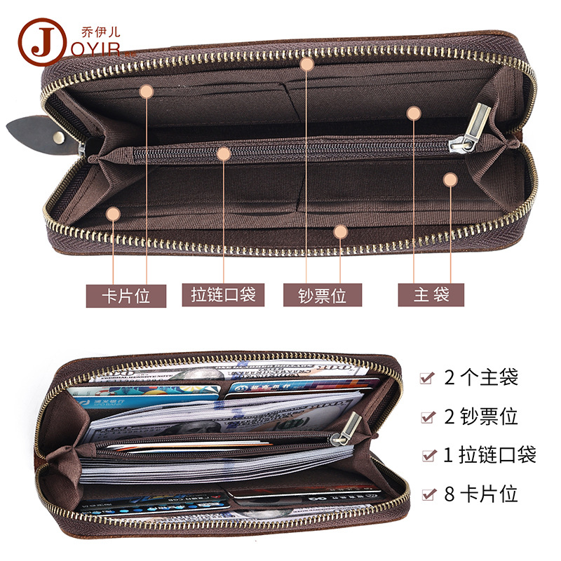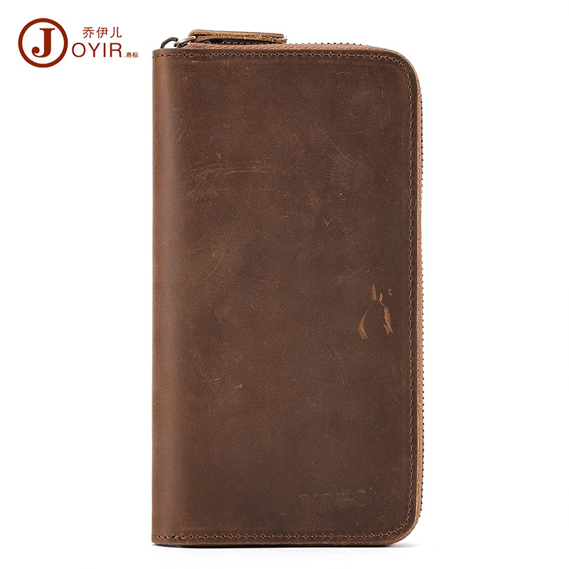 Crazy Horse Leather Men's Long Wallet Men's Bag RFIDAnti-magnetic Wallet Business Retro Genuine Leather Clutch Bag Men's