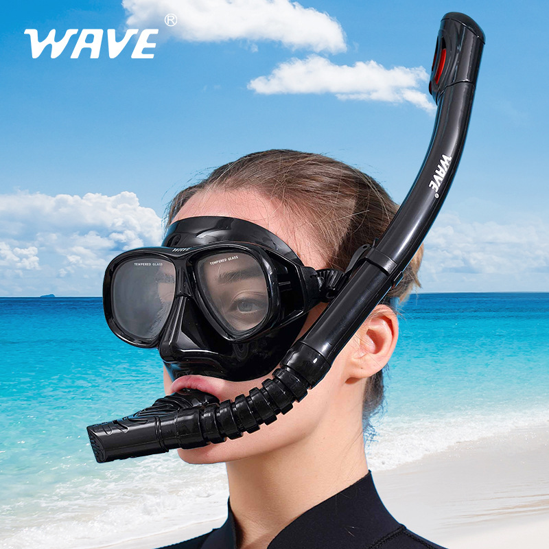 Wave Professional Snorkeling Two-piece Set Of Silicone Fully Dry Snorkel Large Frame With Degree Diving Goggles