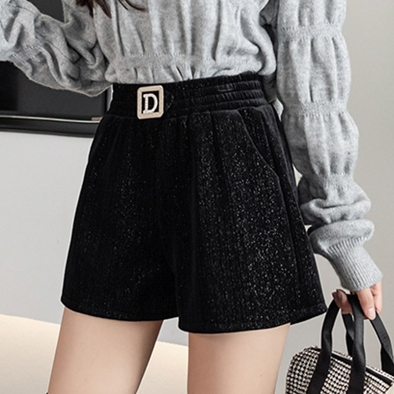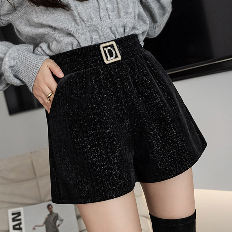 Gold Velvet Diamond Wide Leg Shorts For Women Autumn And Winter Fashion Slim Straight Pants Casual Pants