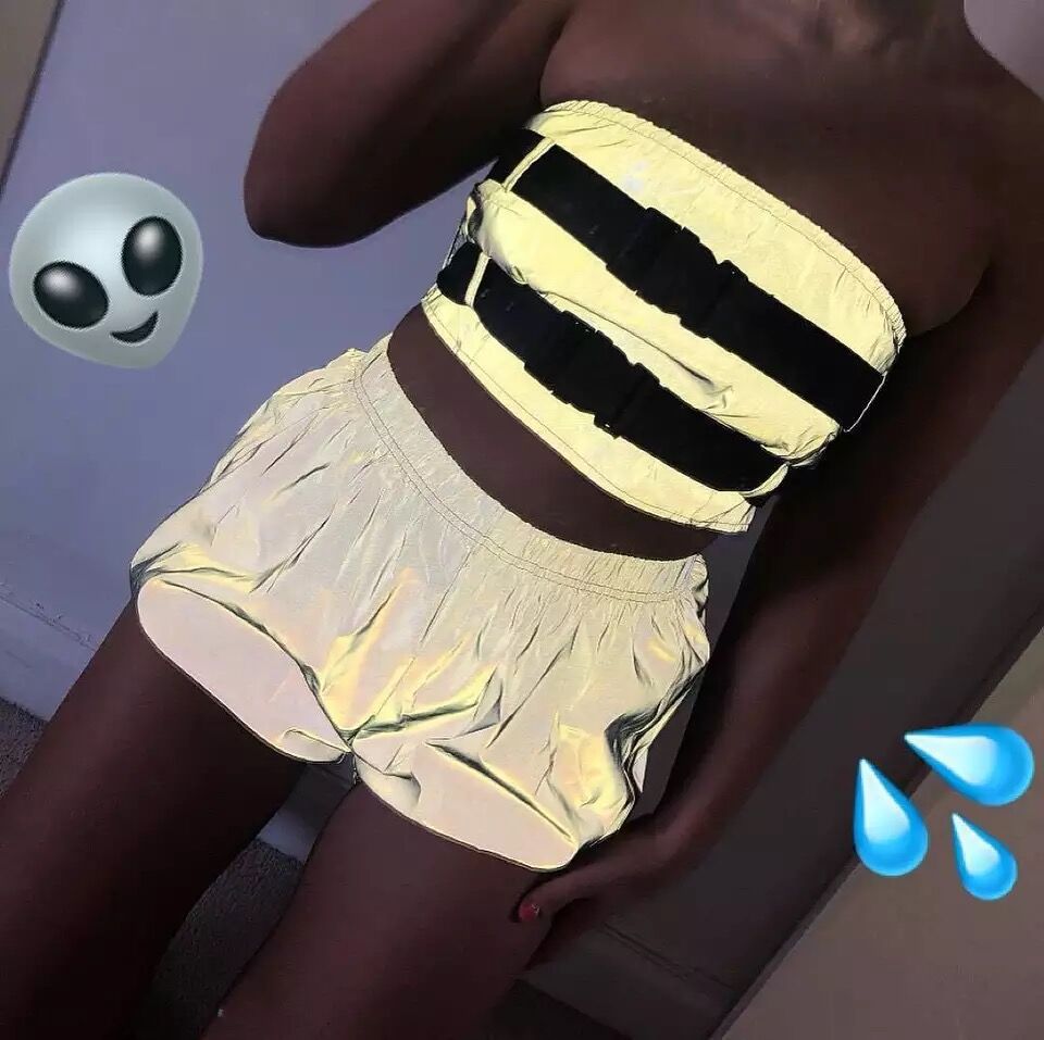 European And American Popular Reflective Color-changing Shorts Summer Sexy Wide-leg Pants European And American Leggings Super Hot