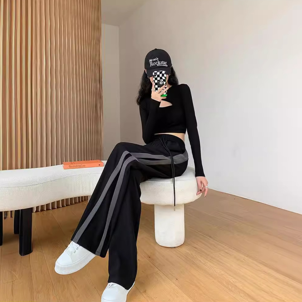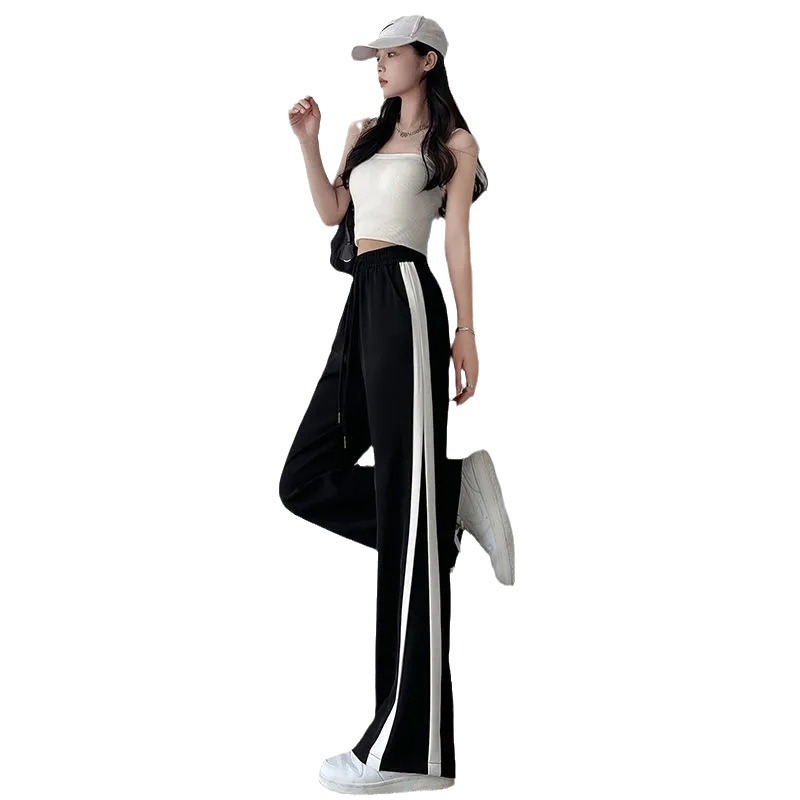 Slit Straight Pants For Women Spring And Summer Style Fat MMLarge Size Black Wide Leg Pants Versatile Loose Casual Pants