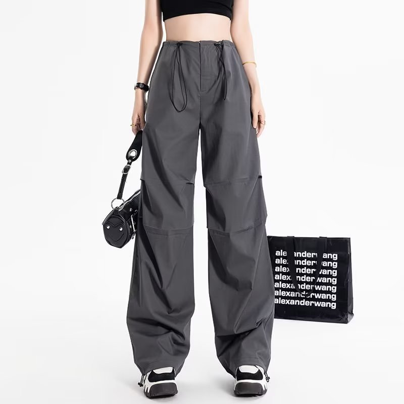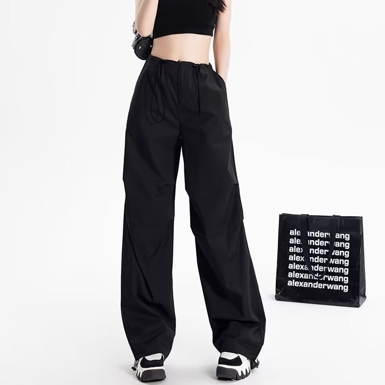 American Drawstring Overalls For Women Summer High Street Hottie Parachute Pants Wide Leg Casual Pants