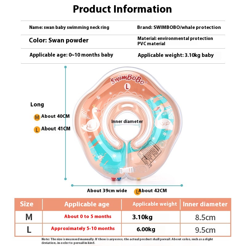 Pink Swan Cartoon Baby Double Air Bag Thickened Neck Ring Baby Swim Ring