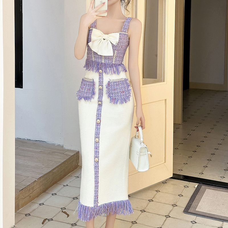 Autumn And Winter Style Women's Sweet Temperament Bow Tube Top Suspender Top Tweed Overalls11203