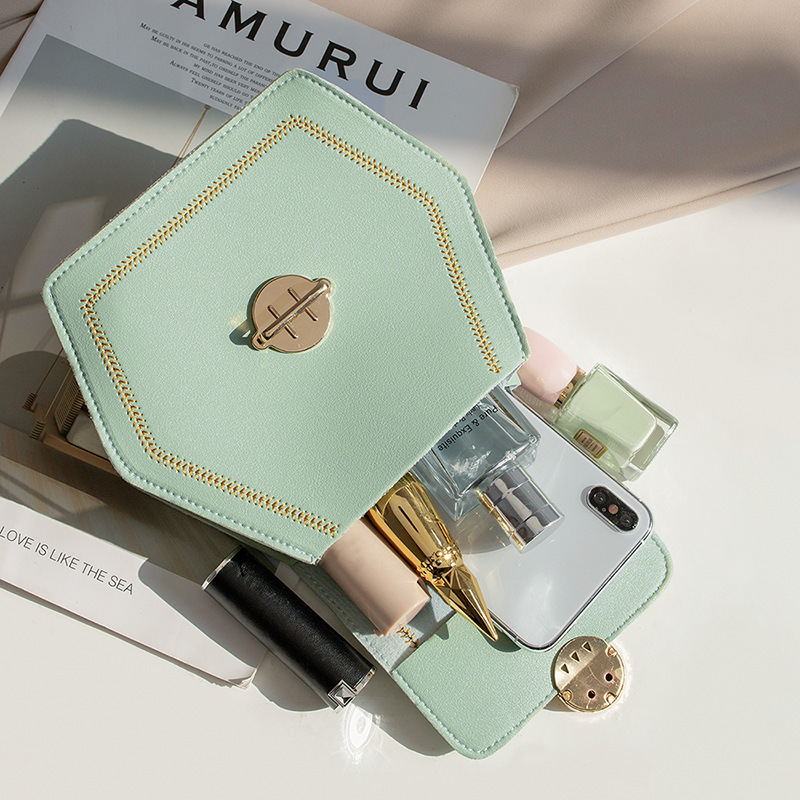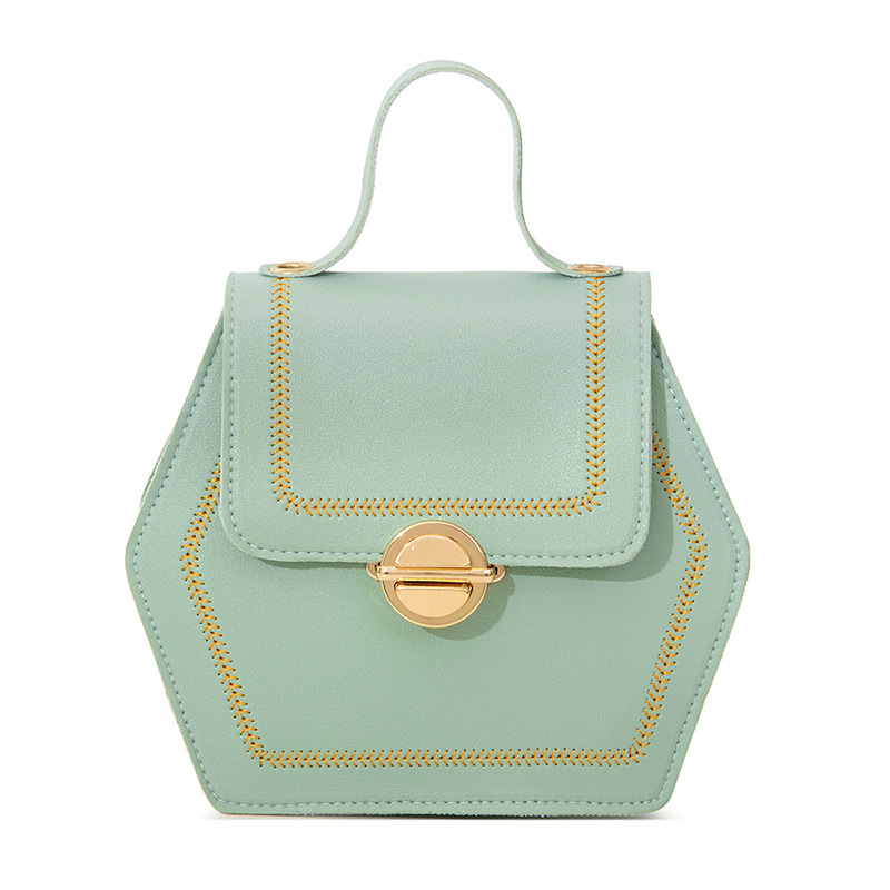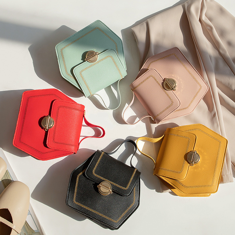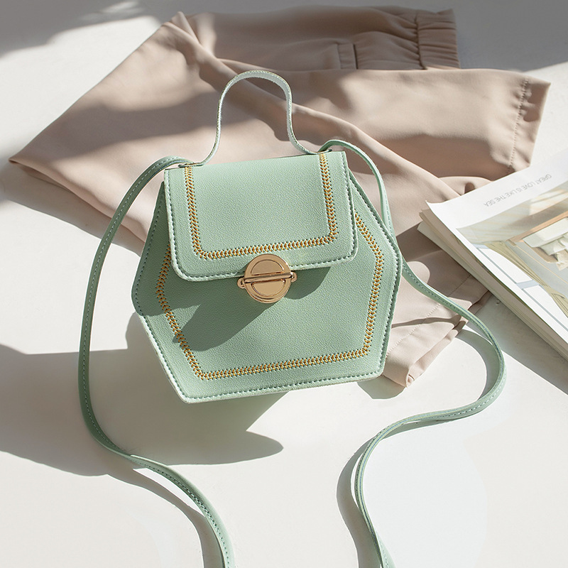Women's Bag2019 Autumn Hexagonal Lock Small Square Bag Fashionable Versatile Car Stitching Mobile Phone Bag Ready Stock