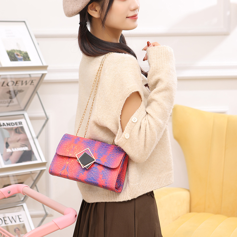 Bags For Women Style Gradient Snake Pattern Square Chain Crossbody Shoulder Square Bag Retro Ladies Paper Leather Shaping Bag
