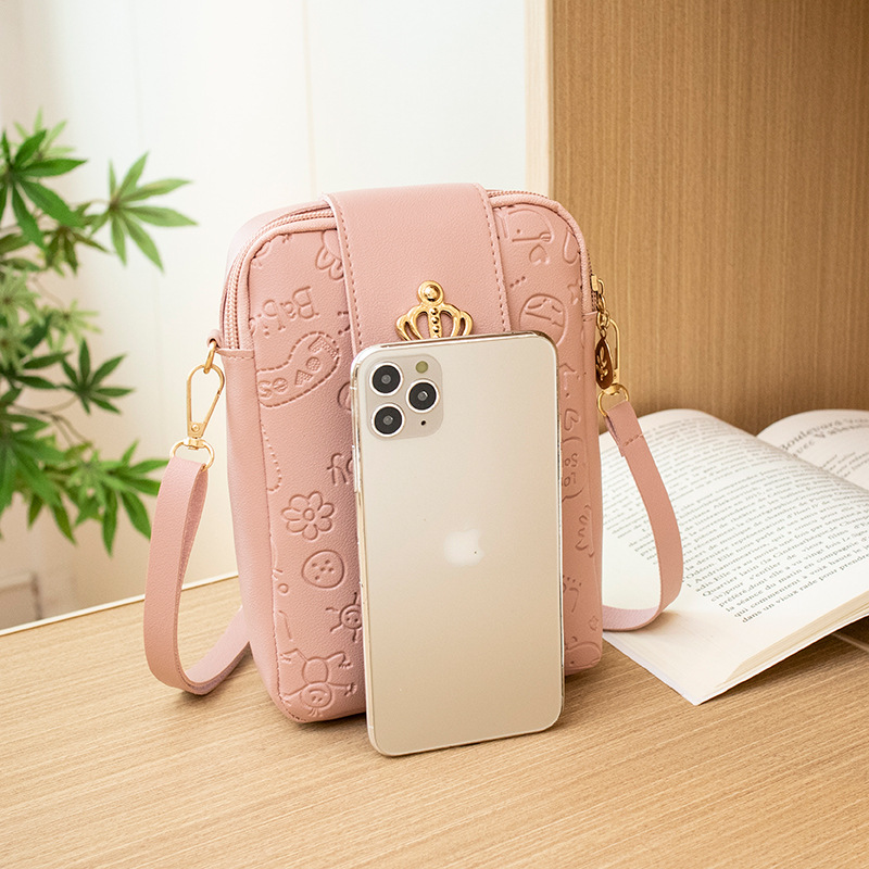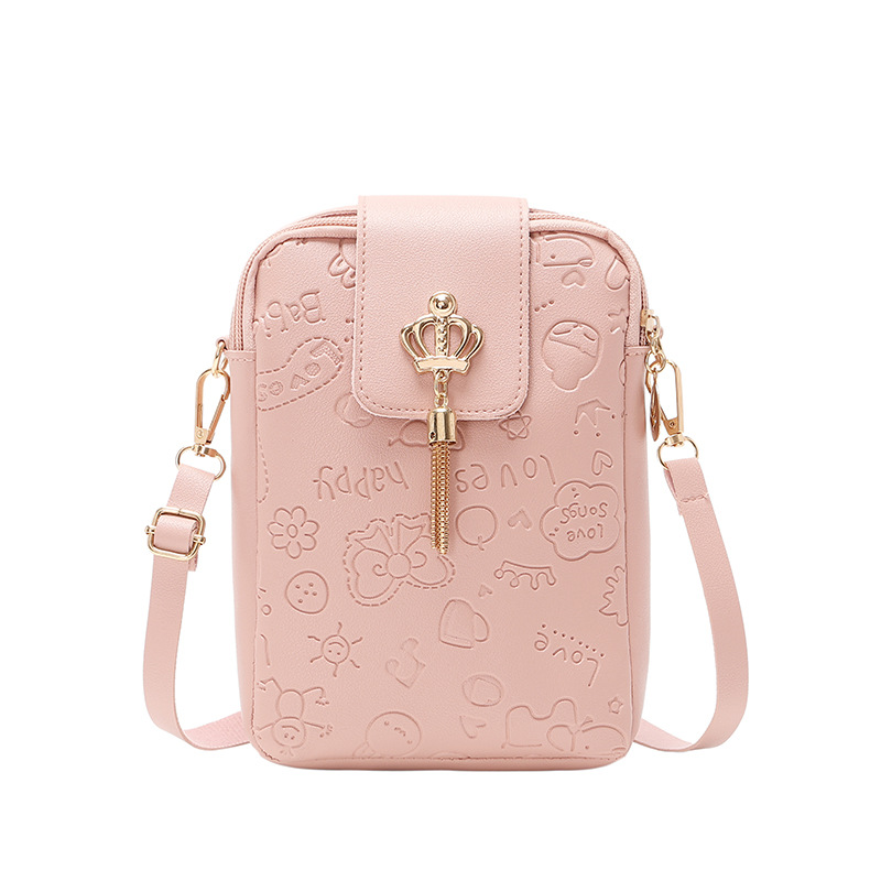 Women's Bag Crown Tassel Embossed Vertical Mobile Phone Bag Small Square Bag Casual Small Bag Foreign Trade Bag