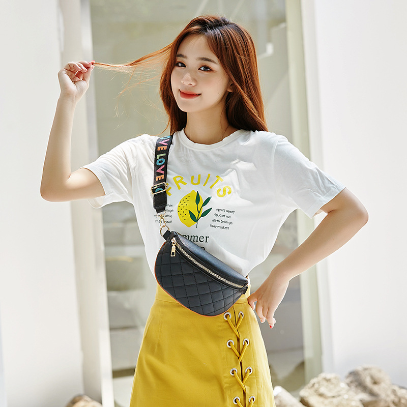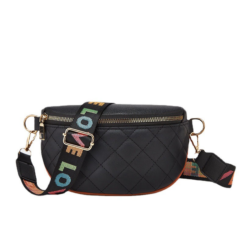 Women's Bags Style Rhombus Embroidered Semicircle Ribbon Small Waist Bag Crossbody Simple Chest Bag Small Bag