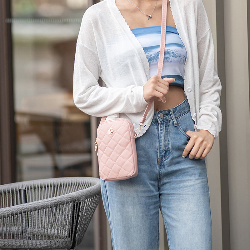 Women's Bags Style Rhombus Embroidered Vertical Simple Mobile Phone Bag Casual Gift Small Bag Small Square Bag