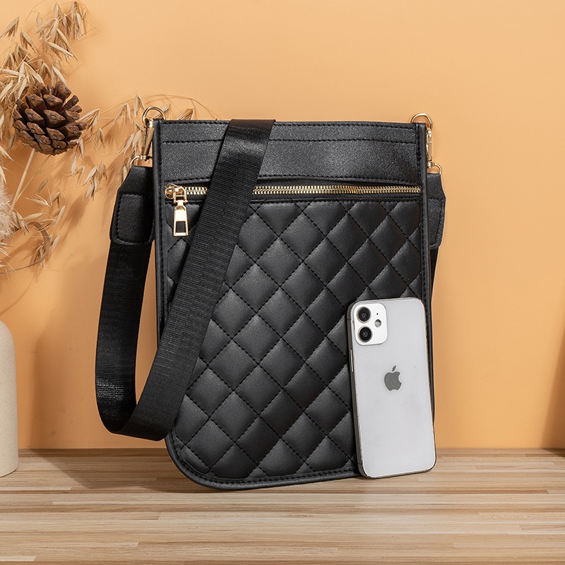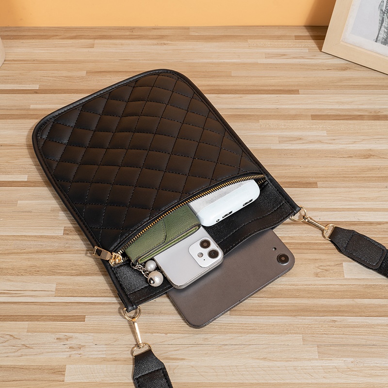 Rhombus Embroidered Mobile Phone Bag For Women Double Layer Small And Exquisite Mobile Phone Small Shoulder Bag Small Fragrance Style Coin Small Bag