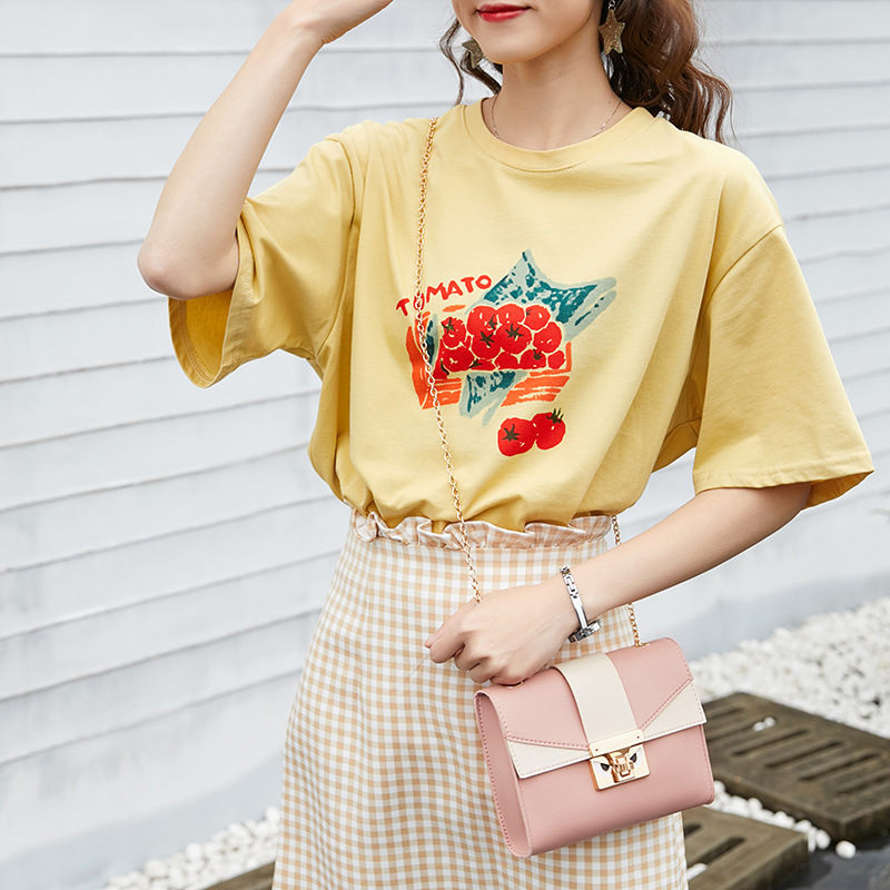 Bags2019 Contrast Color Lock Chain PUSmall Square Bag Fashion Personality Cute Crossbody Mobile Phone Small Bag Ready In Stock
