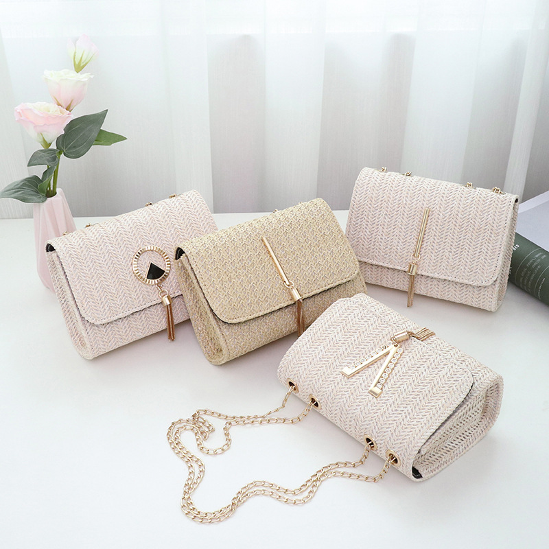 Women's Bags Style Woven Pattern Hardware Decoration Chain Square Bag Casual Crossbody Shoulder Bag Foreign Trade