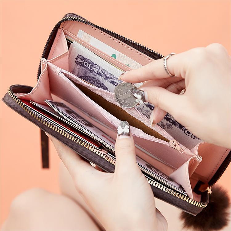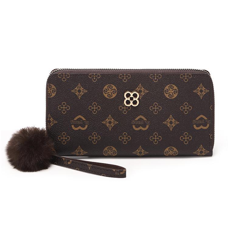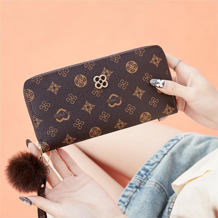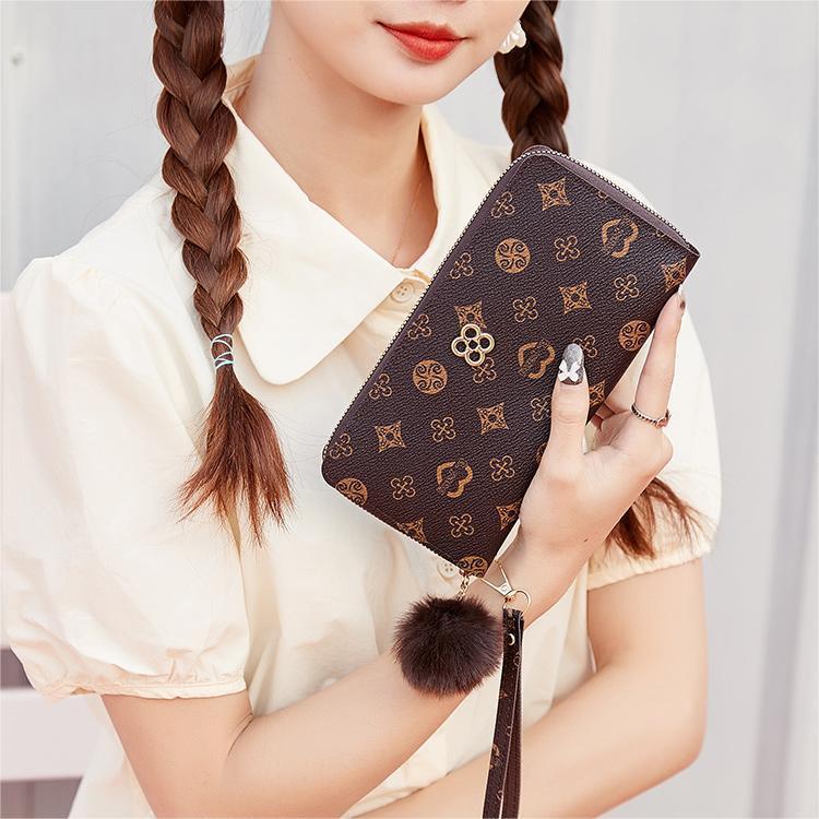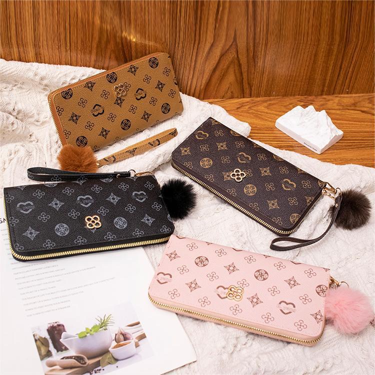 Spring And Summer Style Women's Long Single Pull Wallet Flower Material Fur Ball Hand Coin Purse Foreign Trade Bag Small Bag