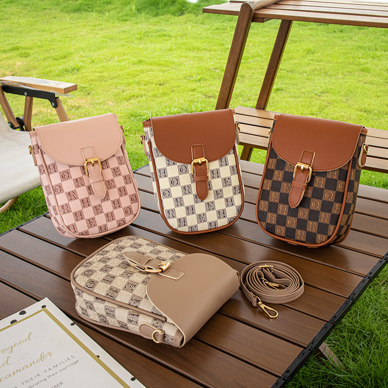Women's Bags Style Letter Plaid Vertical Buckle Crossbody Mobile Phone Bag Casual Bag Small Square Bag