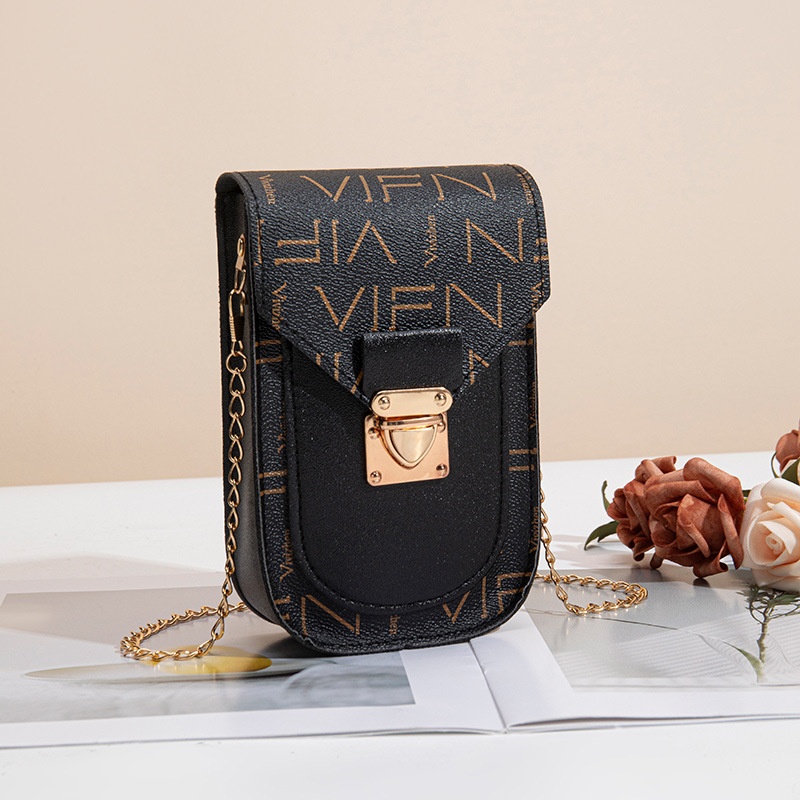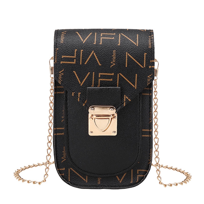 Women's Bags Letter Print Contrast Color Chain Crossbody Small Square Bag Casual Small Fragrant Style Mobile Phone Bag