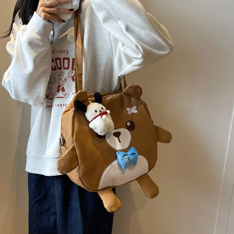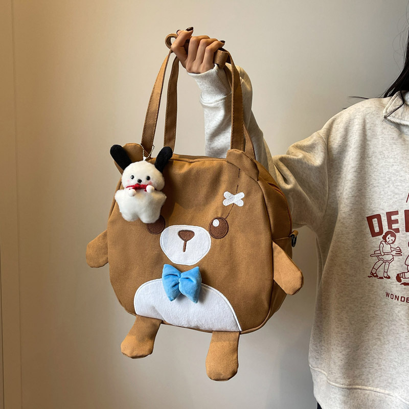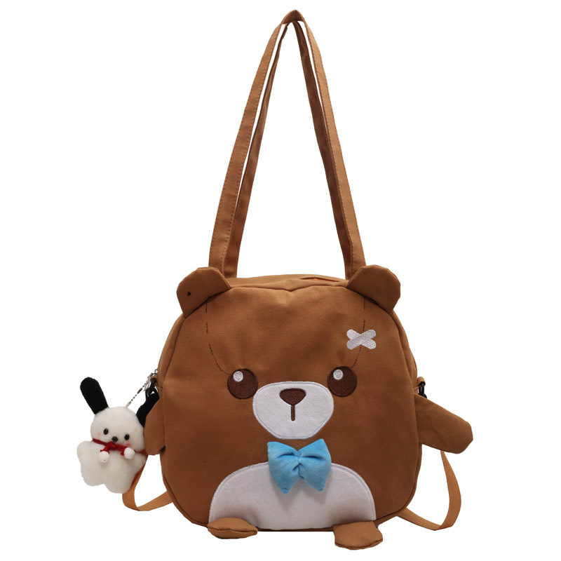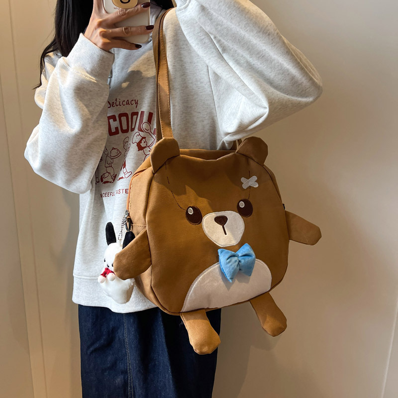 Cute Cartoon Bear Canvas Bag For Women Japanese Style Harajuku Versatile Messenger Bag Large Capacity Student Class Handbag