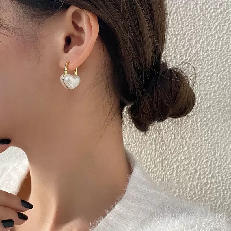 Popular Autumn And Winter Temperament Blogger Pearl Heart Earrings Styley Women's Sweet Light Luxury Earrings Earrings