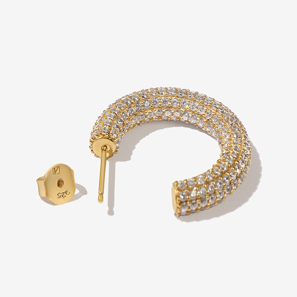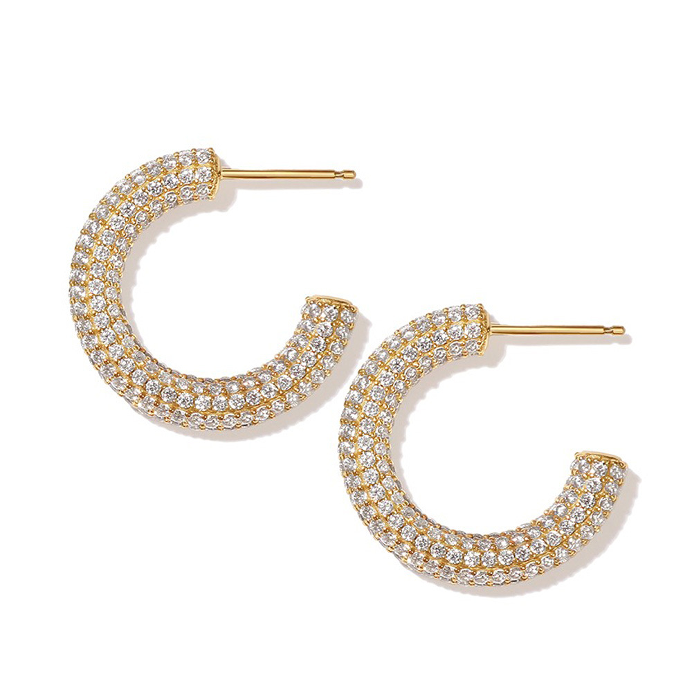 European And American Fashion Metal Style Zircon Earrings Luxury Micro-diamond Star Sterling Silver Needle Plated18 KGold Earrings