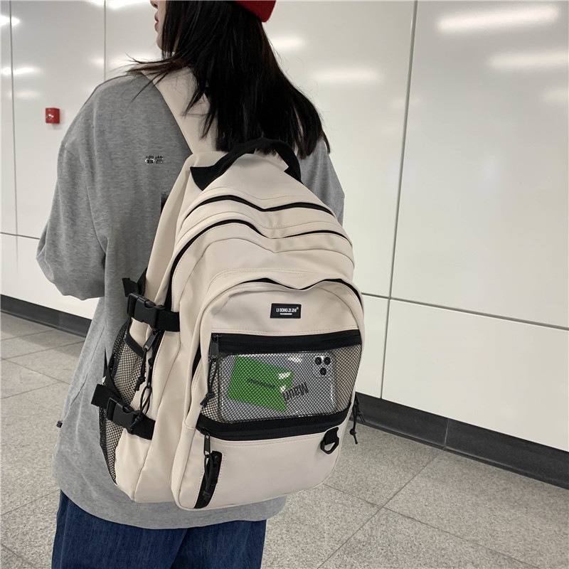 Casual Backpack Japanese Style Harajuku School Bag Korean Version Student Hong Kong Style Workwear Multi-layer Large Capacity Backpack