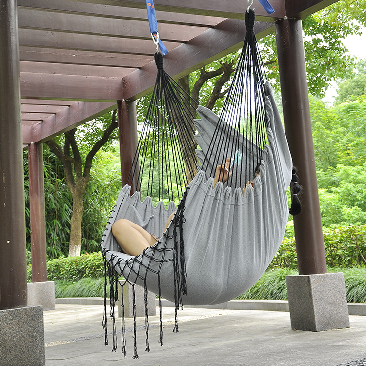 Parni Outdoor Hammock Nordic Style Long Tassel Cotton Canvas Home Indoor Balcony Outdoor Swing Hanging Chair