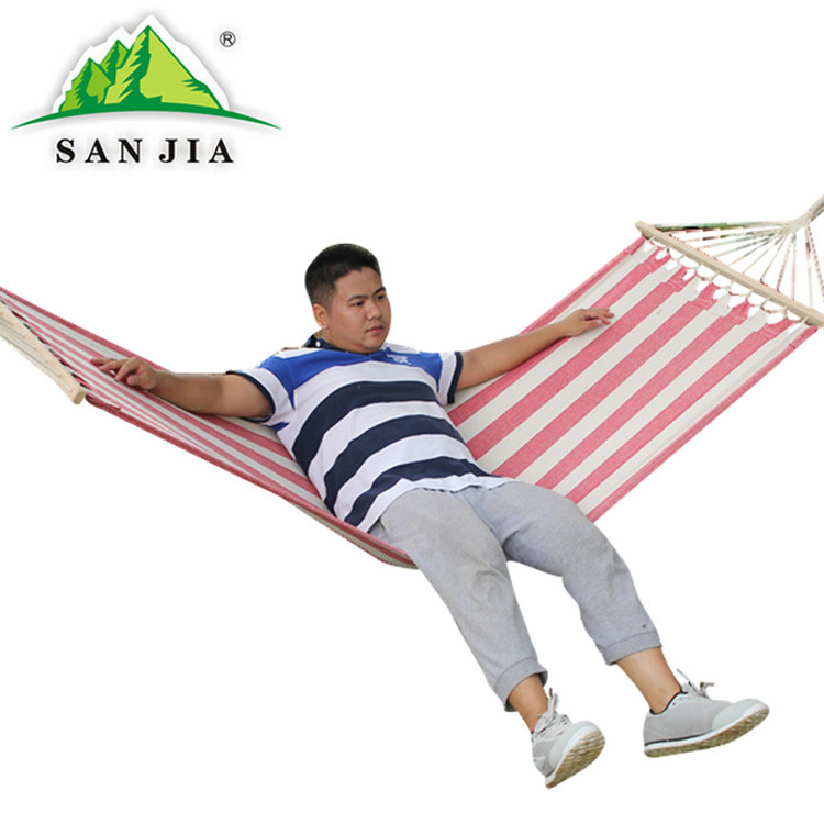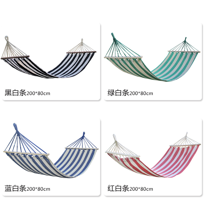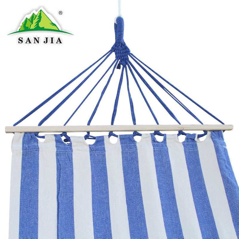 Sanjia Color Strip Hammock Outdoor Leisure Cotton Canvas Hammock With Wooden Sticks Park Swing Hammock Single Hanging Chair