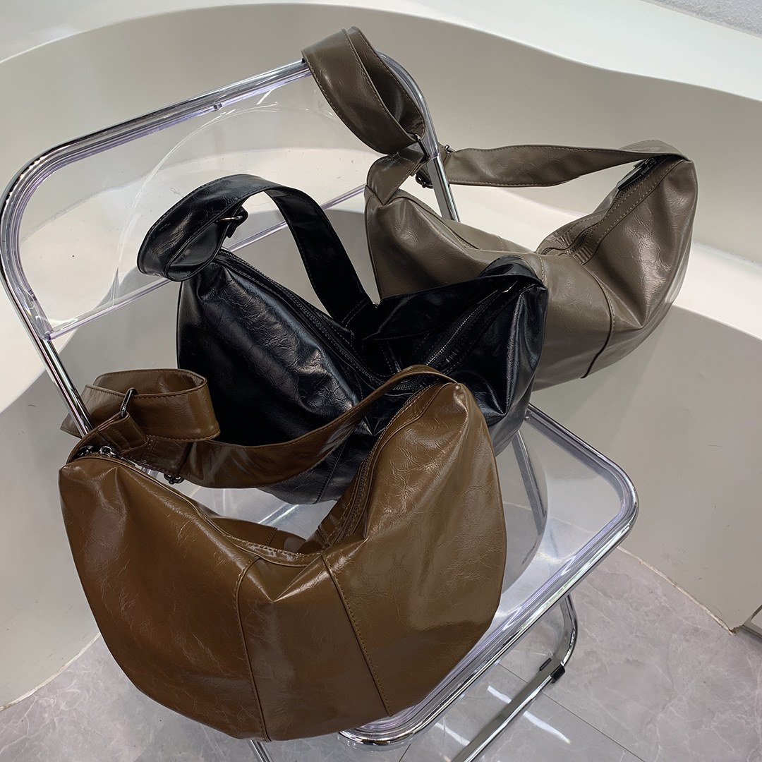 Crossbody Bag For Women Autumn And Winter Style Bag Texture Western Style Wide Shoulder Strap Croissant Soft Leather Pu Dumpling Shoulder Bag