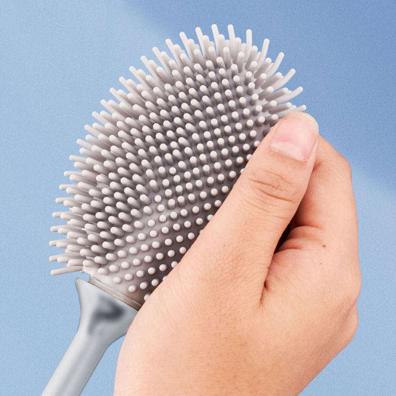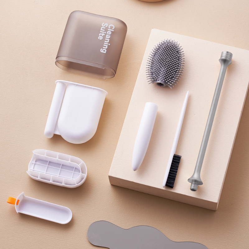 Creative Product Light Luxury Household Soft Rubber Toilet Brush Cleaning Set Wall-mounted Double Brush Wall Hanging With Base Anti-drainage