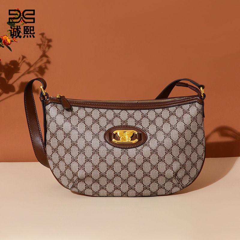 Hong Kong Style Urban Simple Casual Versatile Half-moon Bag Retro High-end Women's Large-capacity Single Shoulder Cross-body Bag