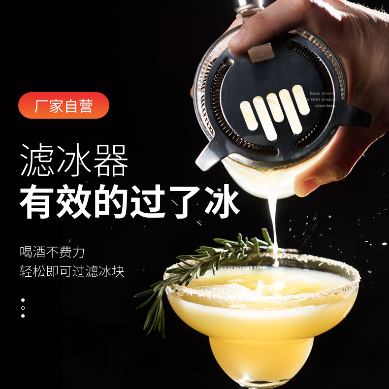 Drinkware Mixer Set9-piece Set304 Stainless Steel Shaker Cup Wooden Frame Base Bar Cocktail Mixing Cup