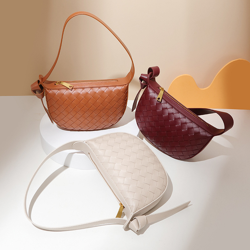Foreign Trade Woven Bag Fashion Simple Shoulder Bag Zipper Opening Texture Versatile Armpit Bag For Women