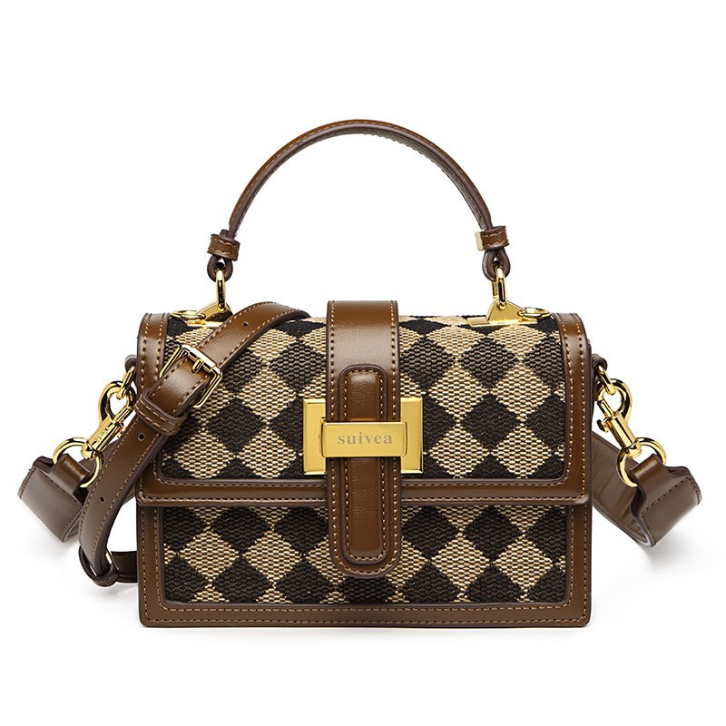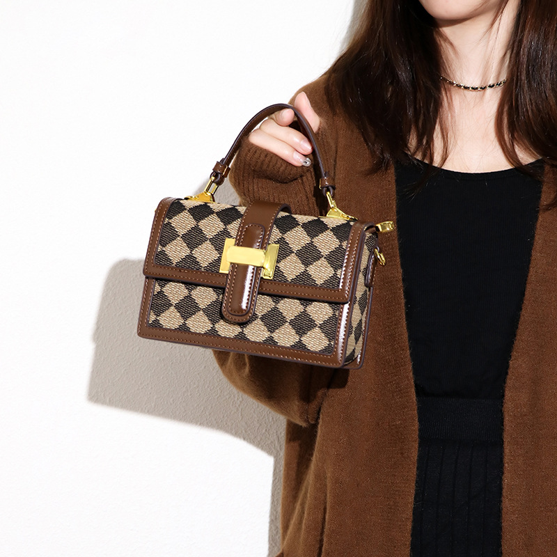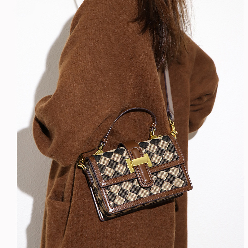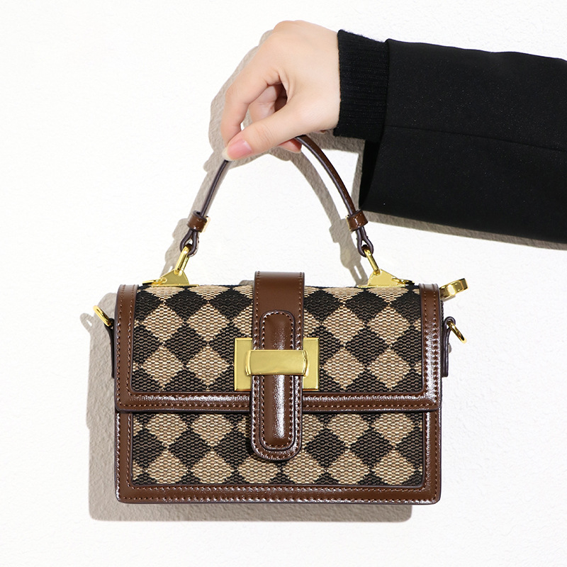 Summer High-end Niche Design Checkerboard Bag Fashion Portable Crossbody Bag Retro Small Square Bag