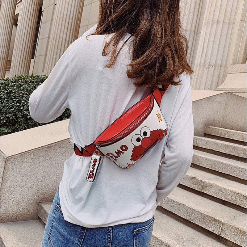 Cartoon Chest Bag For Women PUCrossbody Bag Punk Waist Bag Sesame Street Fashion Small Bag