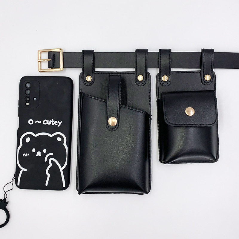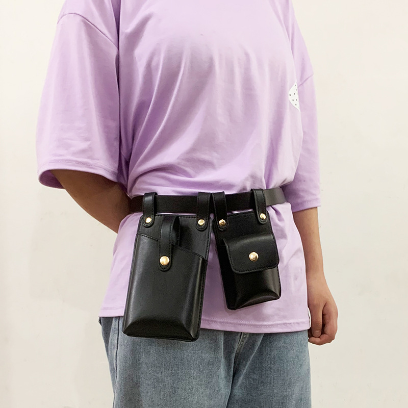 Two-piece Set Of Fashionable Waist Bag For Women Women's Bag Motorcycle Punk Mobile Phone Belt Bagy Bag
