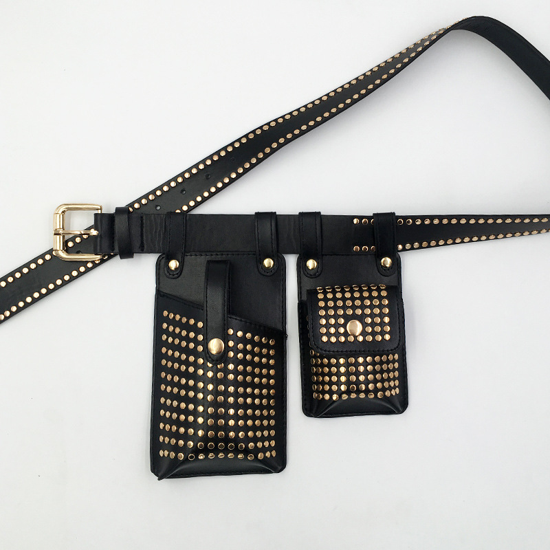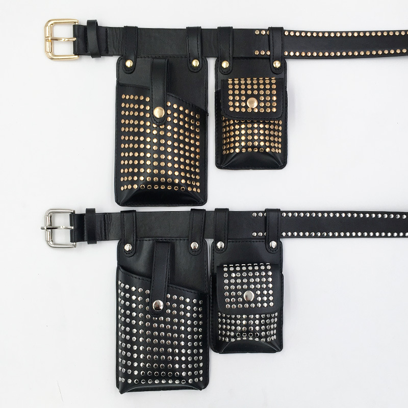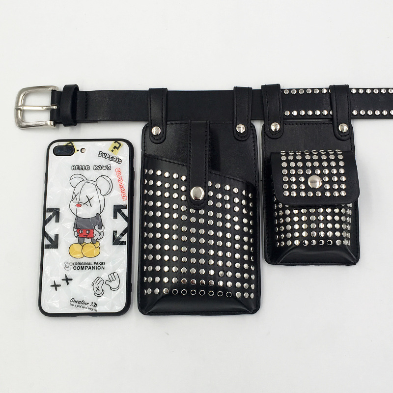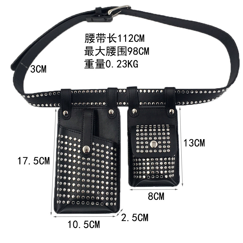 Two-piece Belt Waist Bag Rivet Punk PULeather Mobile Phone Bag Hip-Hop Rap Motorcycle Bag