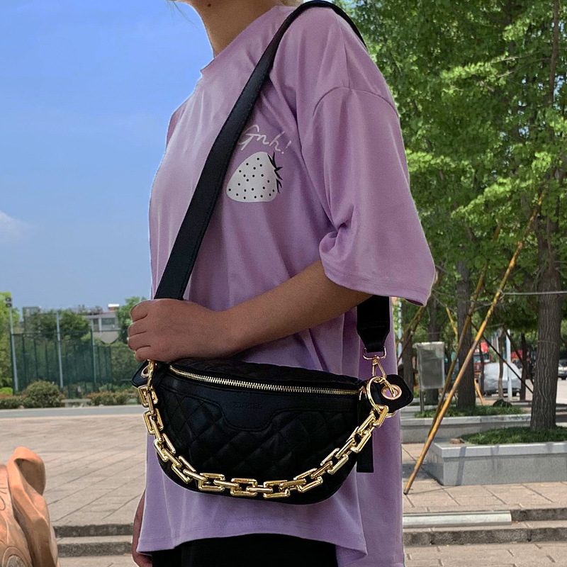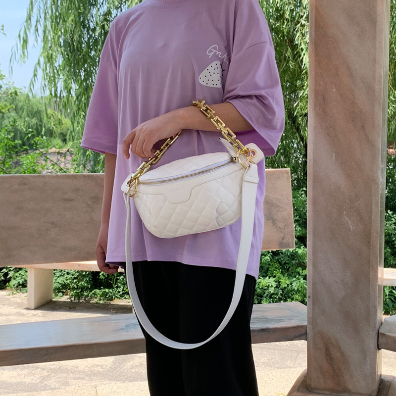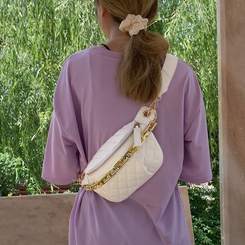 Chain Chest Bag For Womeny Fashion Shoulder Bag Plaid Crossbody Saddle Bag Portable Small Bag