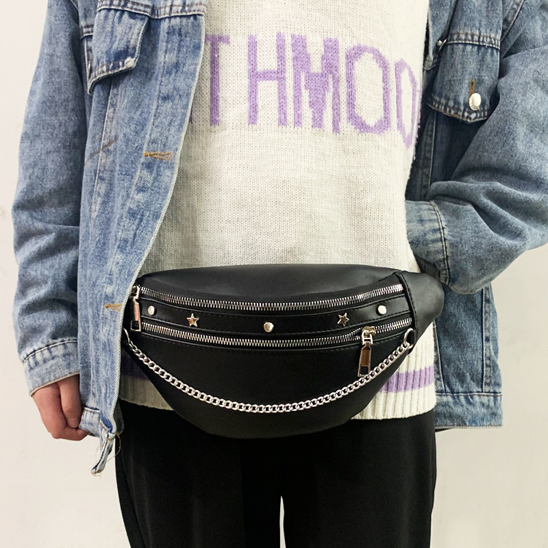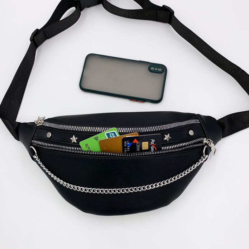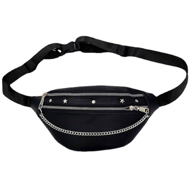 Hip-hop Crossbody Bag For Women PUWaist Bag Punk Chain Rivet Chest Bag Fashion Women's Bag