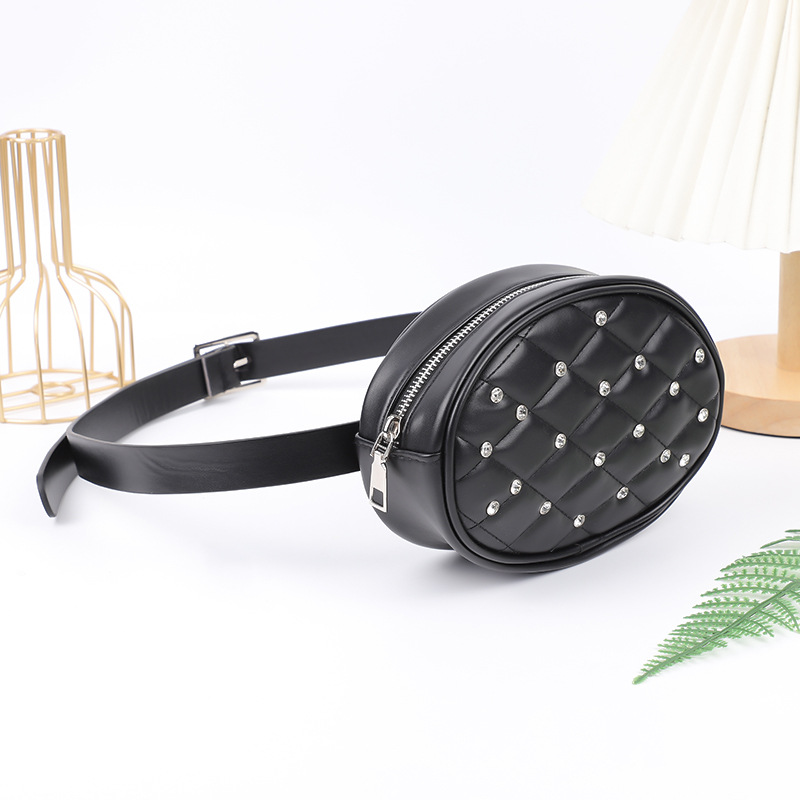 Diamond-encrusted Waist Bag For Women Embroidered Rhombus Pattern Chest Bag Clothing Matching Small Bag Versatile Belt Bag