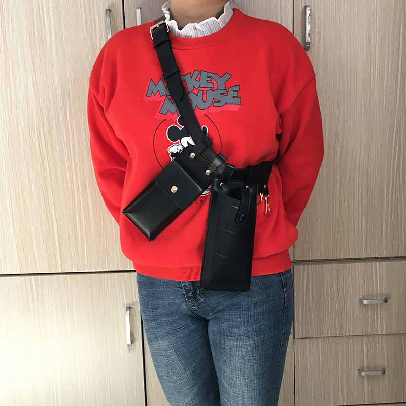 Style Two-piece Waist Bag For Women European And American Fashion PUMobile Phone Waist Bag Crossbody Chest Bag Shoulder Bag