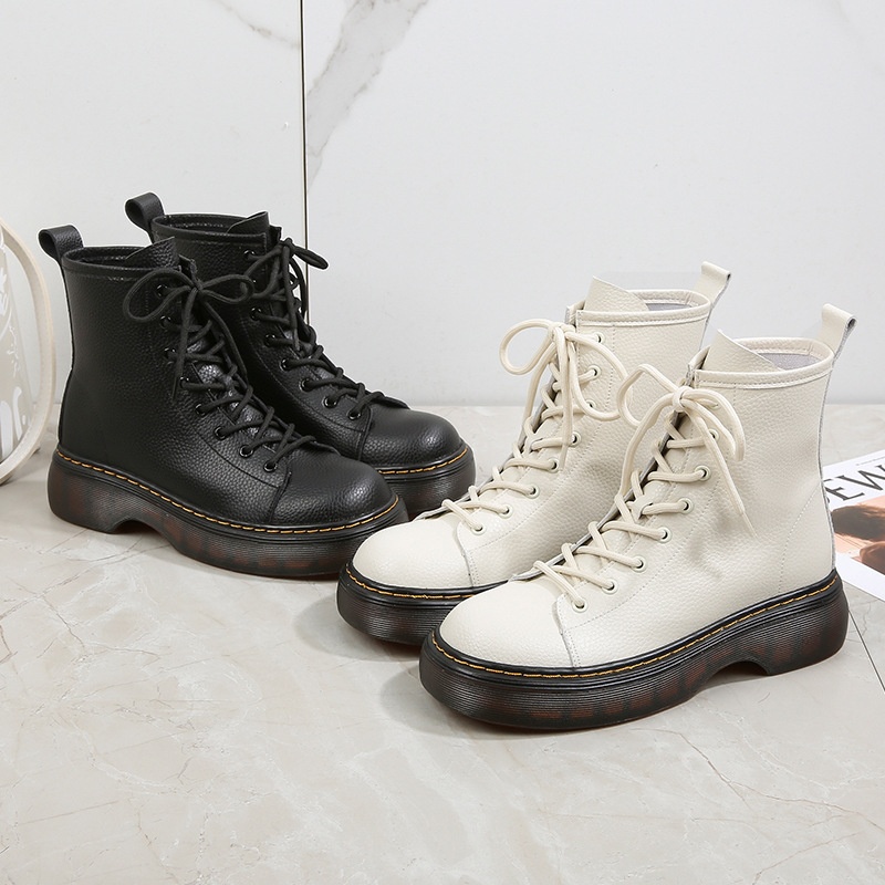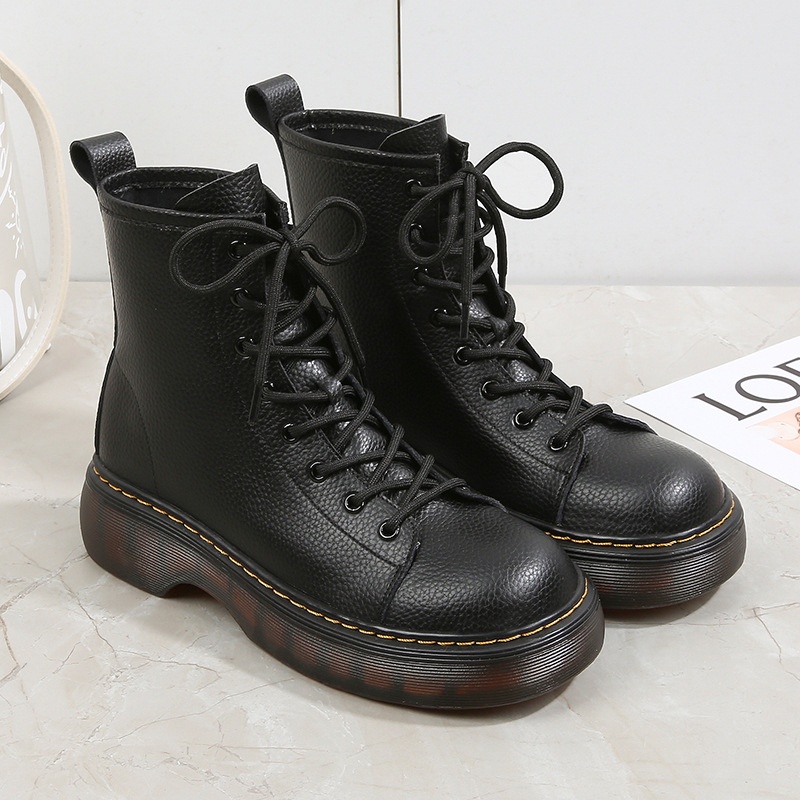 Thick-soled Martin Boots Small Leather Boots British Short Rider Boots Large Size Women's Shoes34-43 Shipping