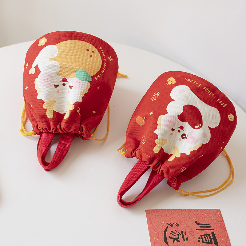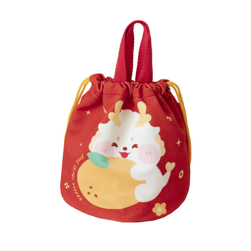 Winter Year Of The Dragon Portable Bucket Bag For Women Cute Year Red Festive Literary And National Style Hand-held Small Bag