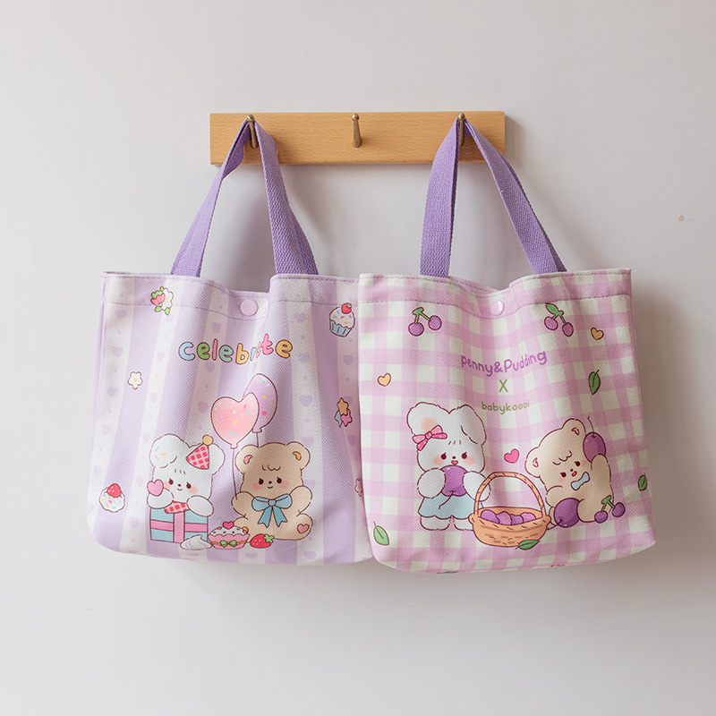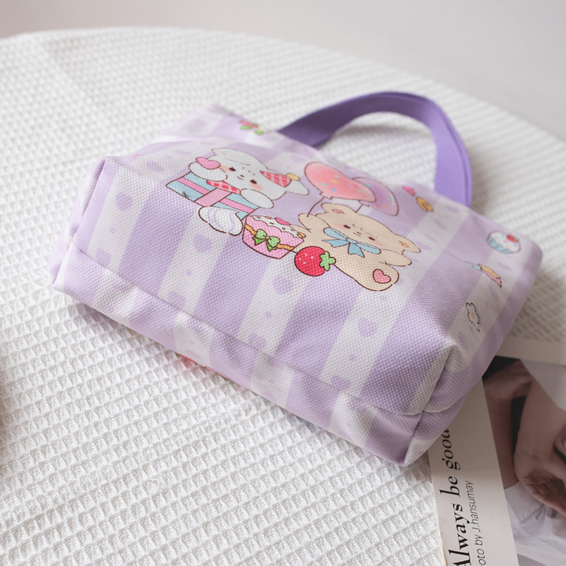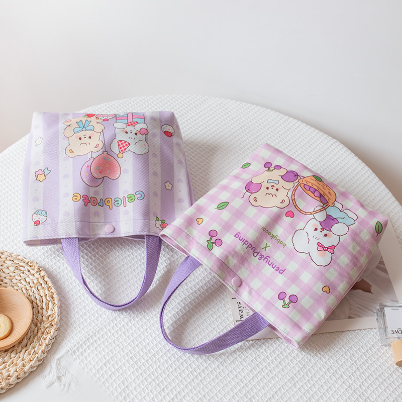 Handbag For Female Students With Cute Print Korean Lunch Box Bag Lunch Bag For Work And School Hand-carrying Small Cloth Bag