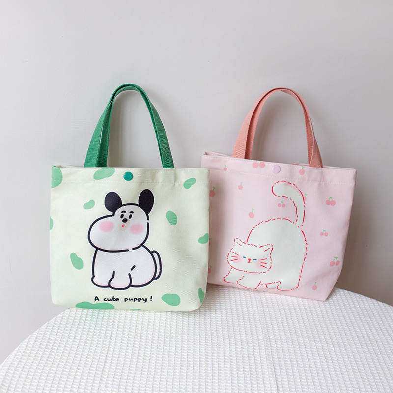 Handbag For Female Students With Cute Print Korean Lunch Box Bag Lunch Bag For Work And School Hand-carrying Small Cloth Bag